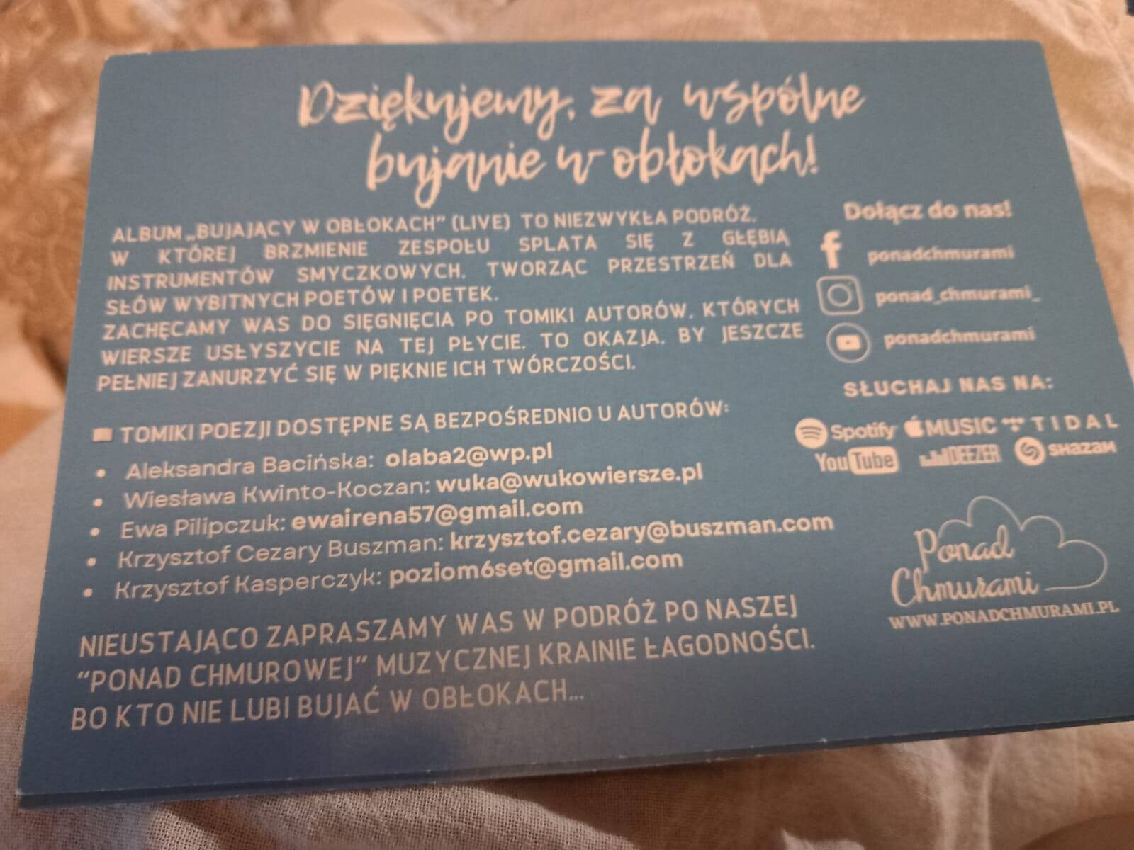 14.08.2025 miałam ogromną przyjemność uczestniczyć w koncercie zespołu PONAD CHMURAMI. To był wyjątkowy wieczór – pełen muzyki, poezji i dobrej energii.